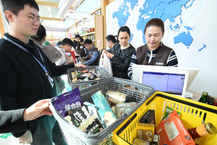 “这里的东西实用又有保障,价格甚至比一些大平台还划算。”开业当天,余先生早早挑选了满满一箱商品,静候付款。他选购的商品涵盖泰国软糖、椰子水,俄罗斯巧克力、牙膏,意大利洗护用品及马来西亚曲奇等,种类丰富,仅花费数百元。