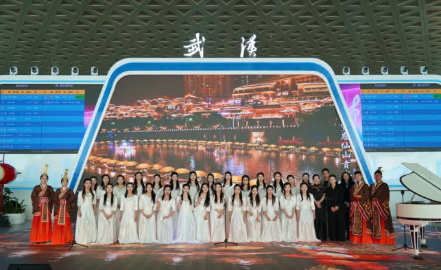 音乐会分上、下午两场进行。演出以入选国家级非物质文化遗产的“青铜编钟”为核心载体,演绎《荆楚华章》《橘颂》《楚商》等多首编钟经典乐曲。清越悠远的金石之音,勾勒出绵延千年的礼乐画卷,引得往来旅客纷纷驻足。下午场特别呈现由武汉音乐学院教师创作的《遇见长江》钟琴合奏与合唱节目,编钟与钢琴、人声巧妙呼应,艺术化展现长江文化从古至今的蓬勃生命力与时代气息。